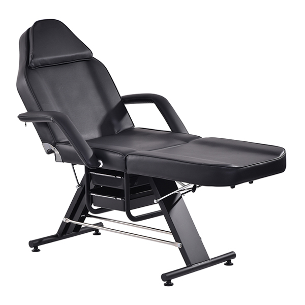 Upholstered in premium quality PU vinyl. High density foam for longevity and superior comfort. Removable arms and insert pillow. Face hole. Metal base with 2 slide out drawers.