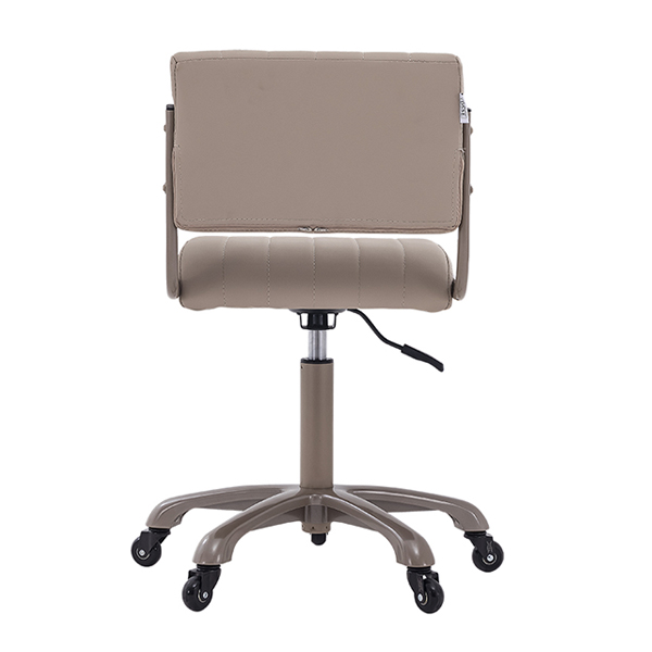 Glamourous beige gold frame and base. Back support to help in correct posture. Height adjustable. Padded memory foam. Professional 50mm roller wheels.