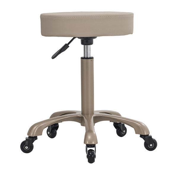 Anti-microbal medical grade vinyl. Memory foam. Beige gold 5 star base and gaslift. 65mm roller wheels. Adjustable height.